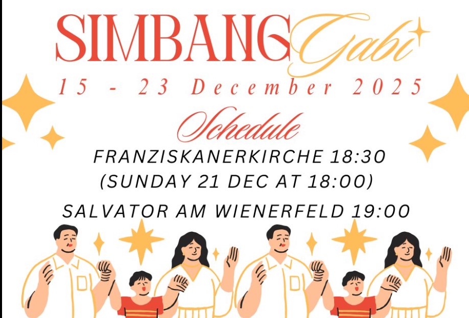 Vienna, Austria — The Filipino Catholic Chaplaincy in Vienna joyfully announces the official schedule of the 2025 Simbang Gabi celebrations. This cherished Filipino Advent tradition continues to unite communities across the world. Beginning December 15, 2025, two daily Masses will be held to accommodate the growing Filipino community in the city: Simbang Gabi, a nine‑day novena of dawn or evening Masses leading up to Christmas, holds a profound place in the hearts of Filipinos. Rooted in centuries‑old devotion, it symbolizes anticipation, gratitude, and hope as the faithful prepare spiritually for…